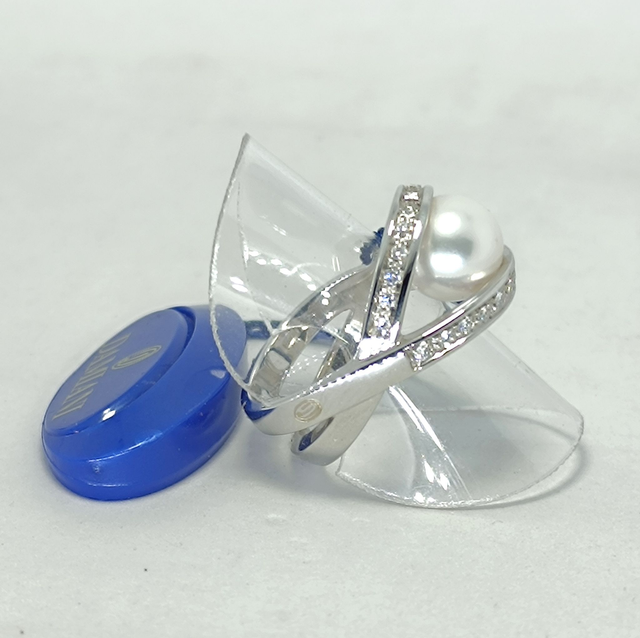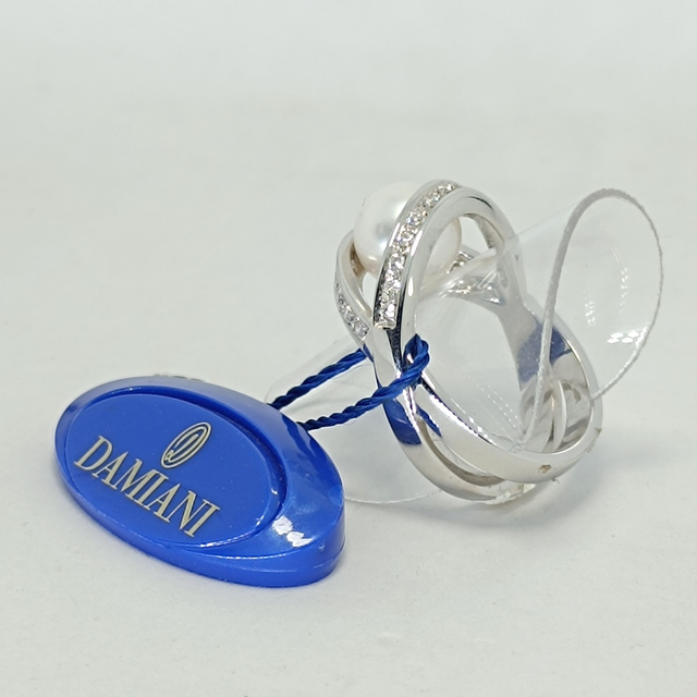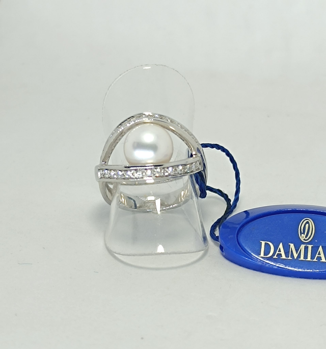 ANELLO DAMIANI REALIZZATO IN ORO BIANCO 18KT, GRAMMI 9,50 ,PERLA GIAPPONESE DIAM.9,5/10 E DIAMANTI TAGLIO BRILLANTE CT.0,26 COLORE H PUREZZA IF-