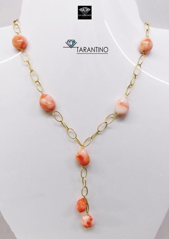 Collana di Corallo Rosa Pelle d'Angelo e Oro 18k. Collana realizzata con elementi di Corallo Rosa Pelle d'Angelo. Raffinata chiusura in Oro 18k. Provenienza Corallo rosa: Giappone gr. 17.20