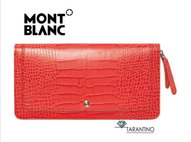 Portafoglio 8 scomparti chiusura zip e flap in pregiata pelle provenienza europea con effetto martellato di color corallo della collezione Boheme Montblanc