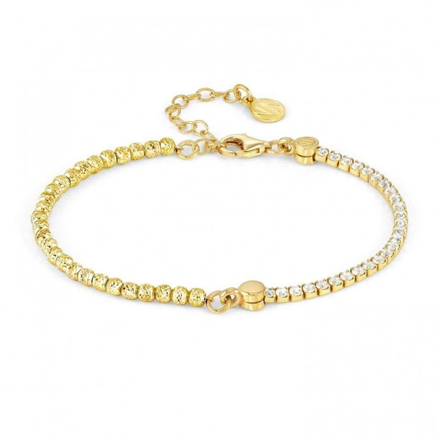 Bracciale da donna Nomination 148615/012 in Argento 925% color oro giallo. Collezione Bracciali Nomination Chic&Charms. Lunghezza regolabile 16-20 cm. Bracciale Tennis con zirconi e sfere diamantate . Chiusura con moschettone. Astuccio originale Nomination e garanzia 24 mesi.