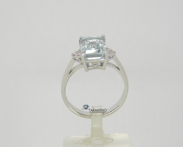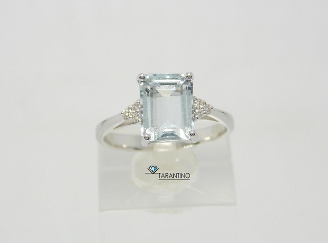 ello in Oro bianco 18k con Acquamarina taglio smeraldo ct. 3.15 e ai lati Diamanti taglio brillante ct. 0.06Colore H e Purezza Vs.
